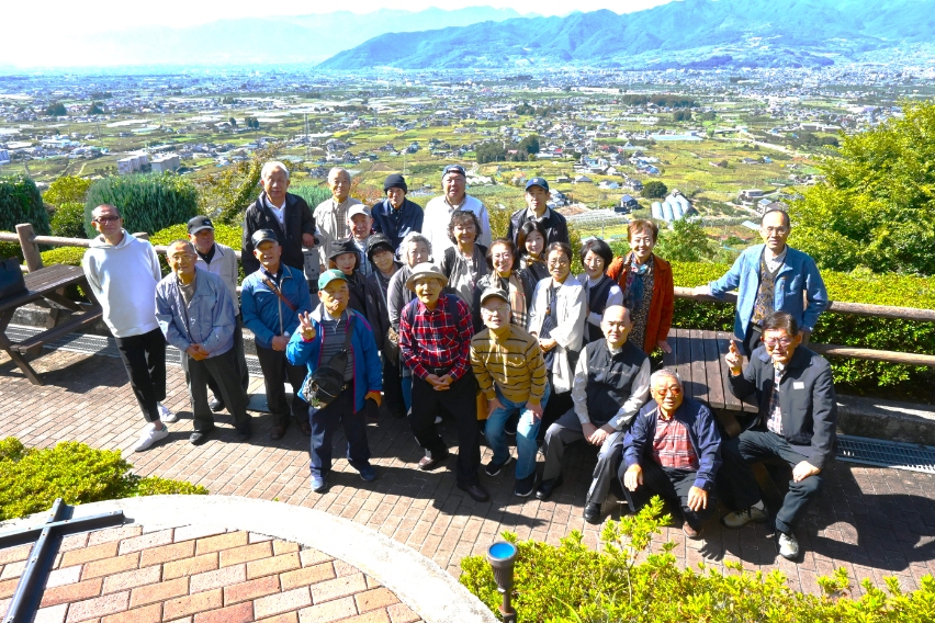 2024.10.24: 秋の親睦日帰りバス旅行のご報告 10月21日、秋の親睦日帰りバス旅行~甲州市ぶどうの丘・山梨市ほったらかし温泉巡り~が26名の参加のもと行われました。 今回は、甲州市市街を見渡す「勝沼ぶどうの丘」でバーベキュー、そして、食後は「ほったらかし温泉」で富士山を望みながら、ゆったりと温泉に浸る旅行でした。 天候にも恵まれ、会員相互の親睦も一層深められた旅行になりました。 |
